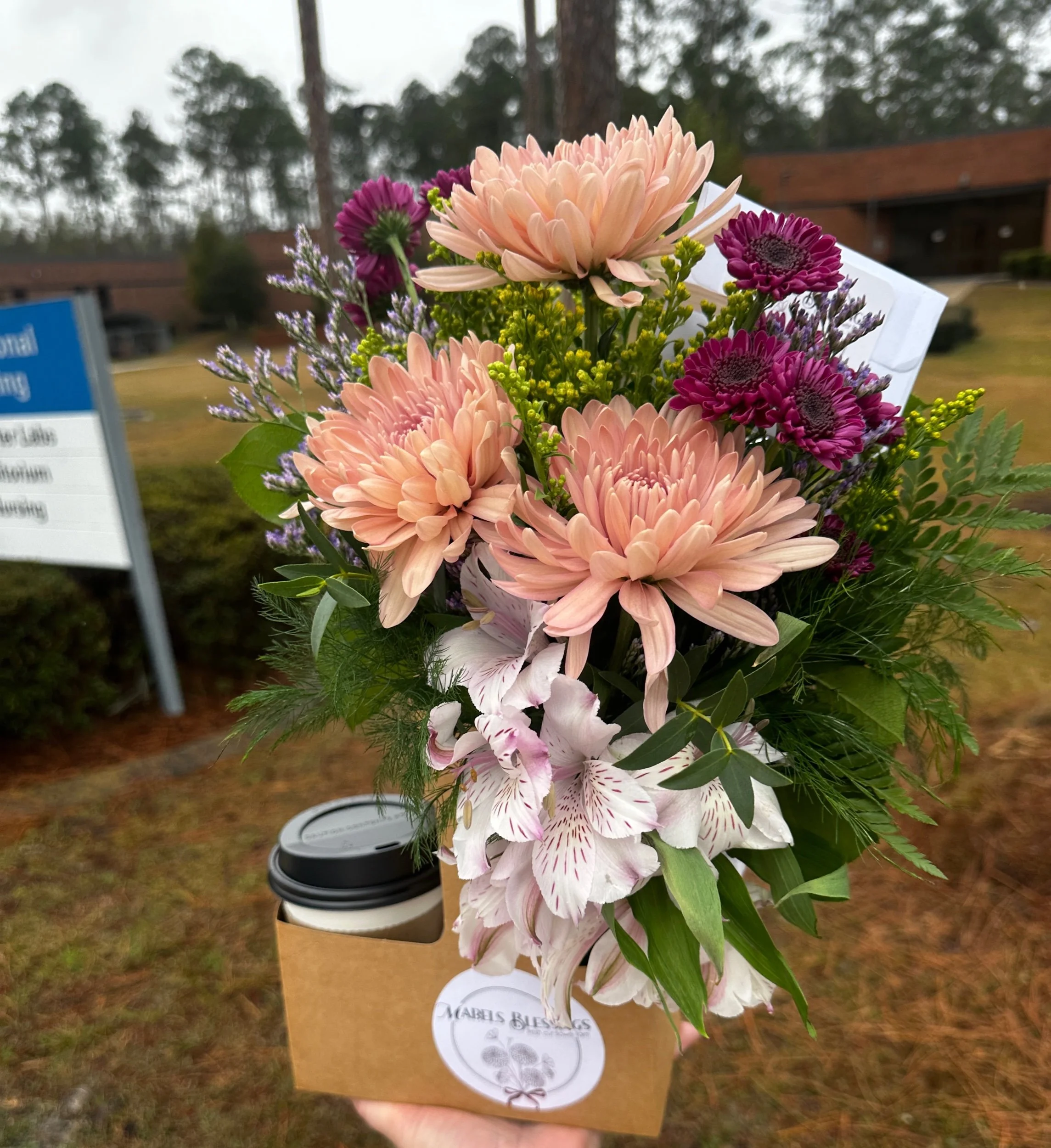Large Flower Arrangement + 1 Small Beverage